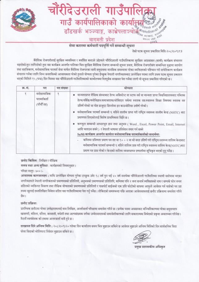 सेवा करारमा कर्मचारी पदपूर्ती गर्ने सम्बन्धी सूचना ।