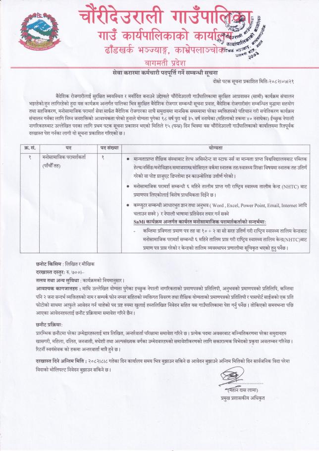 सेवा करारमा कर्मचारी पदपूर्ती गर्ने सम्बन्धी सूचना ।।