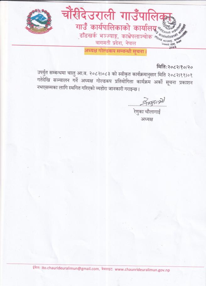 अध्यक्ष गोल्डकप सम्बन्धी सूचना