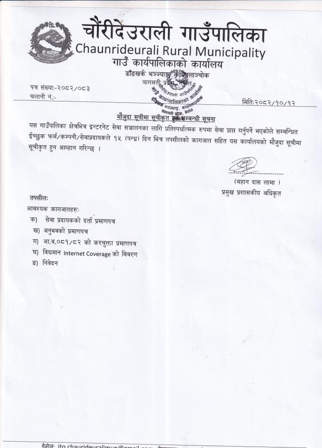 मौजुदा सूचीमा सूचीकृत हुने सम्बन्धी सूचना ।