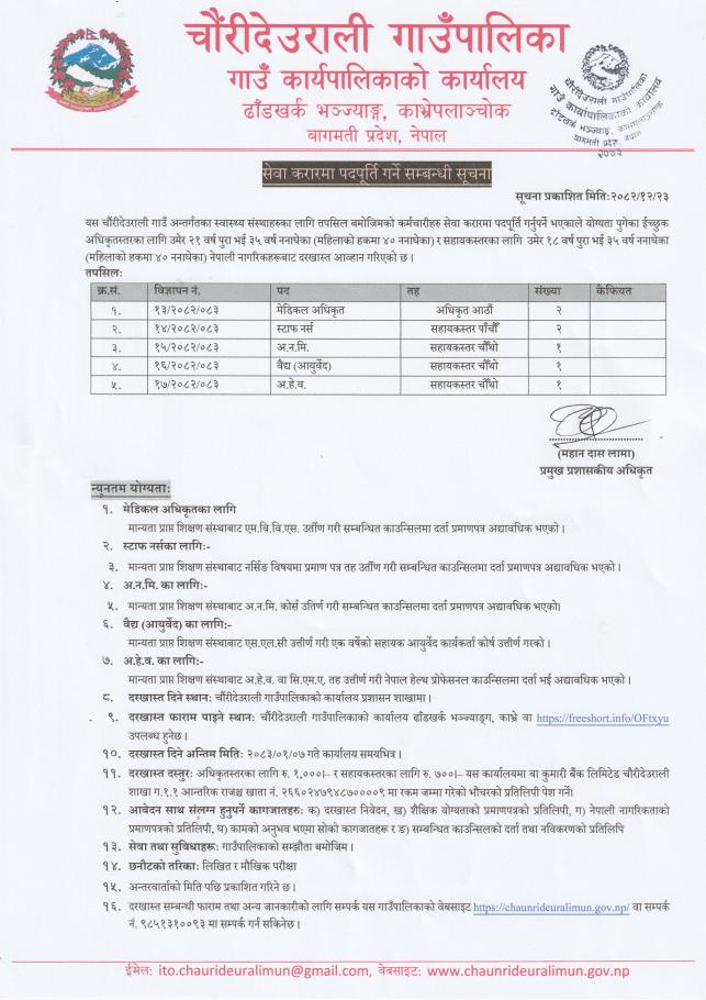 सेवा करारमा पदपूर्ति गर्ने सम्बन्धी सूचना ।।